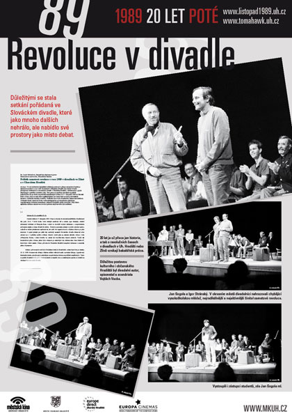 - Od 19.30 hodin v klubu Mír promítání dobových filmů z Uh.Hradiště a okolí z let 1988–1990. (Za spolupráci děkujeme zejména Slováckému muzeu, Slováckému divadlu, Městu Uh.Hradiště, Gymnáziu Uh.Hradiště, Michalu Stránskému, fotografům se jmény i bezejmenným, soukromým přispěvatelům a spoustě dalších.)