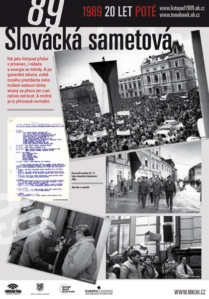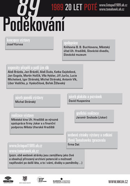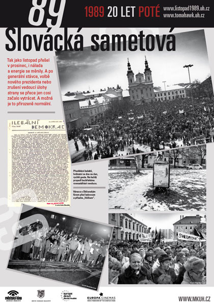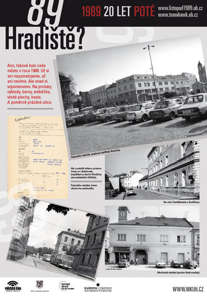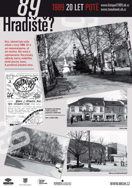 - Od 19.30 hodin v klubu Mír promítání dobových filmů z Uh.Hradiště a okolí z let 1988–1990. (Za spolupráci děkujeme zejména Slováckému muzeu, Slováckému divadlu, Městu Uh.Hradiště, Gymnáziu Uh.Hradiště, Michalu Stránskému, fotografům se jmény i bezejmenným, soukromým přispěvatelům a spoustě dalších.)